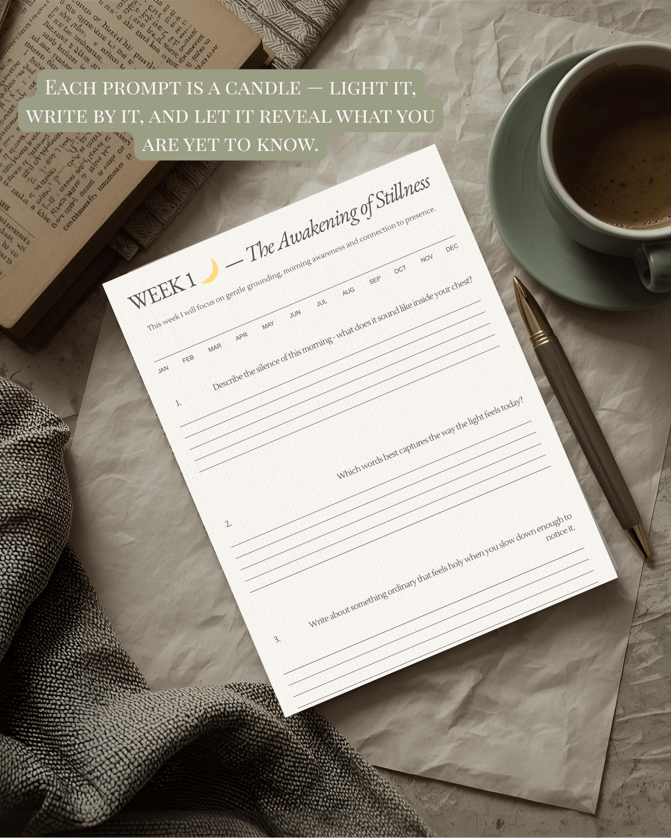 Each prompt is written like a whisper — guiding you gently into reflection, imagination, and truth.