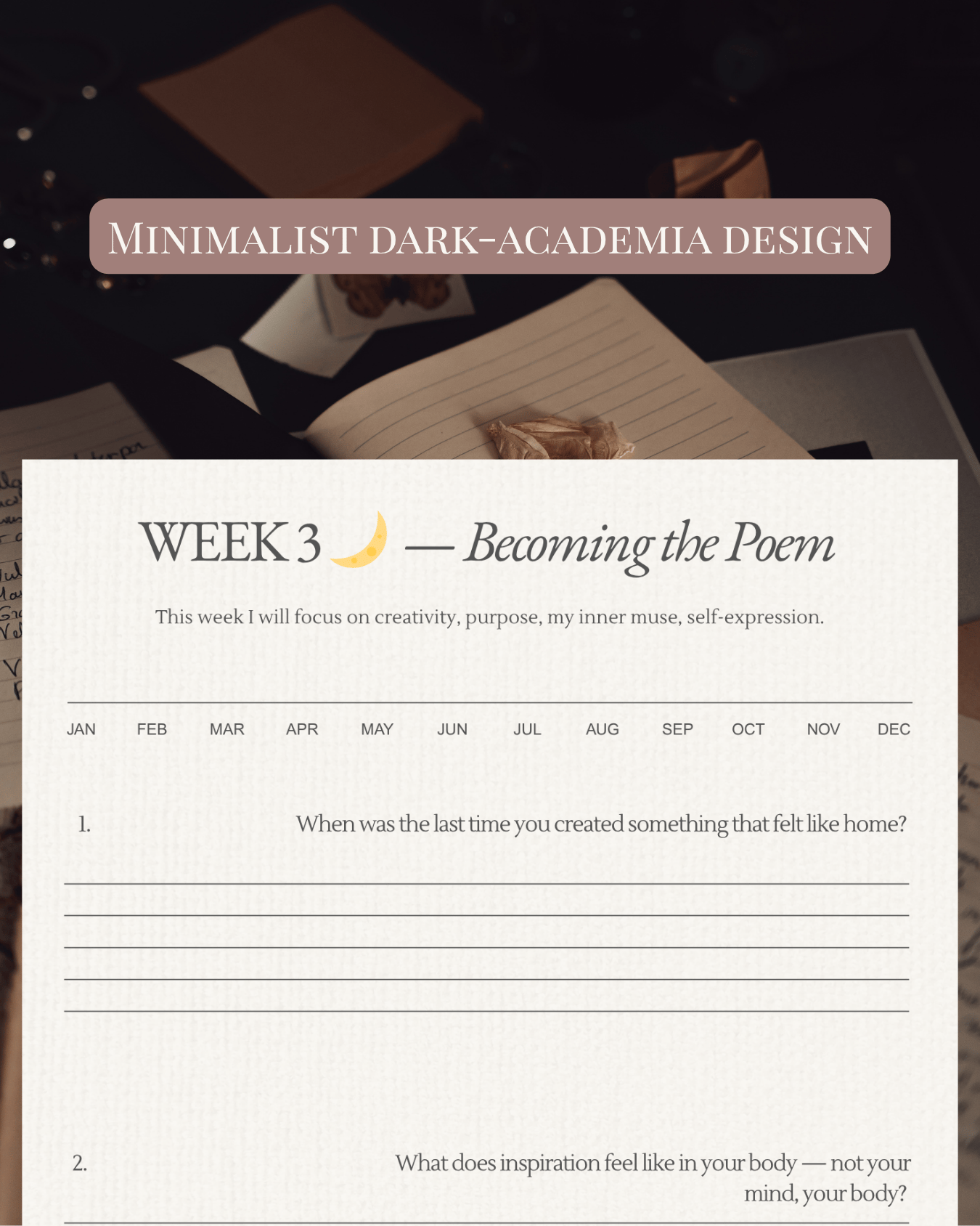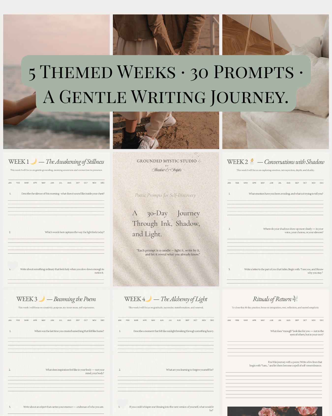This 30-Day Poetic Journey is a printable experience designed to awaken your creativity and help you rediscover your inner world through words.